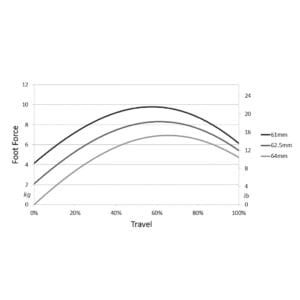 Clutch : The clutch features a regressive spring mechanism to simulate a typical concave clutch curve. Furthermore, the clutch features three pedal force curve settings, adjustable spring preload, pedal angle and pedal height.