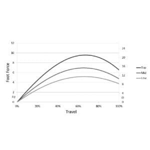 Clutch : The clutch features a regressive spring mechanism to simulate a typical concave clutch curve. Furthermore, the clutch features three pedal force curve settings, adjustable spring preload, pedal angle and pedal height.